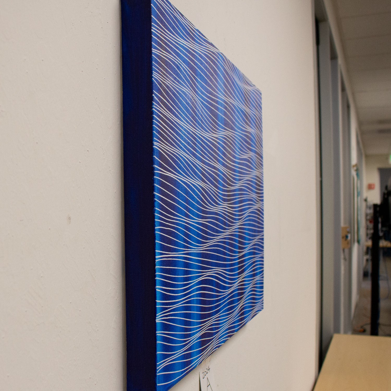 Sides are painted solid in the same blue (Phthalo blue). No stripes on sides.