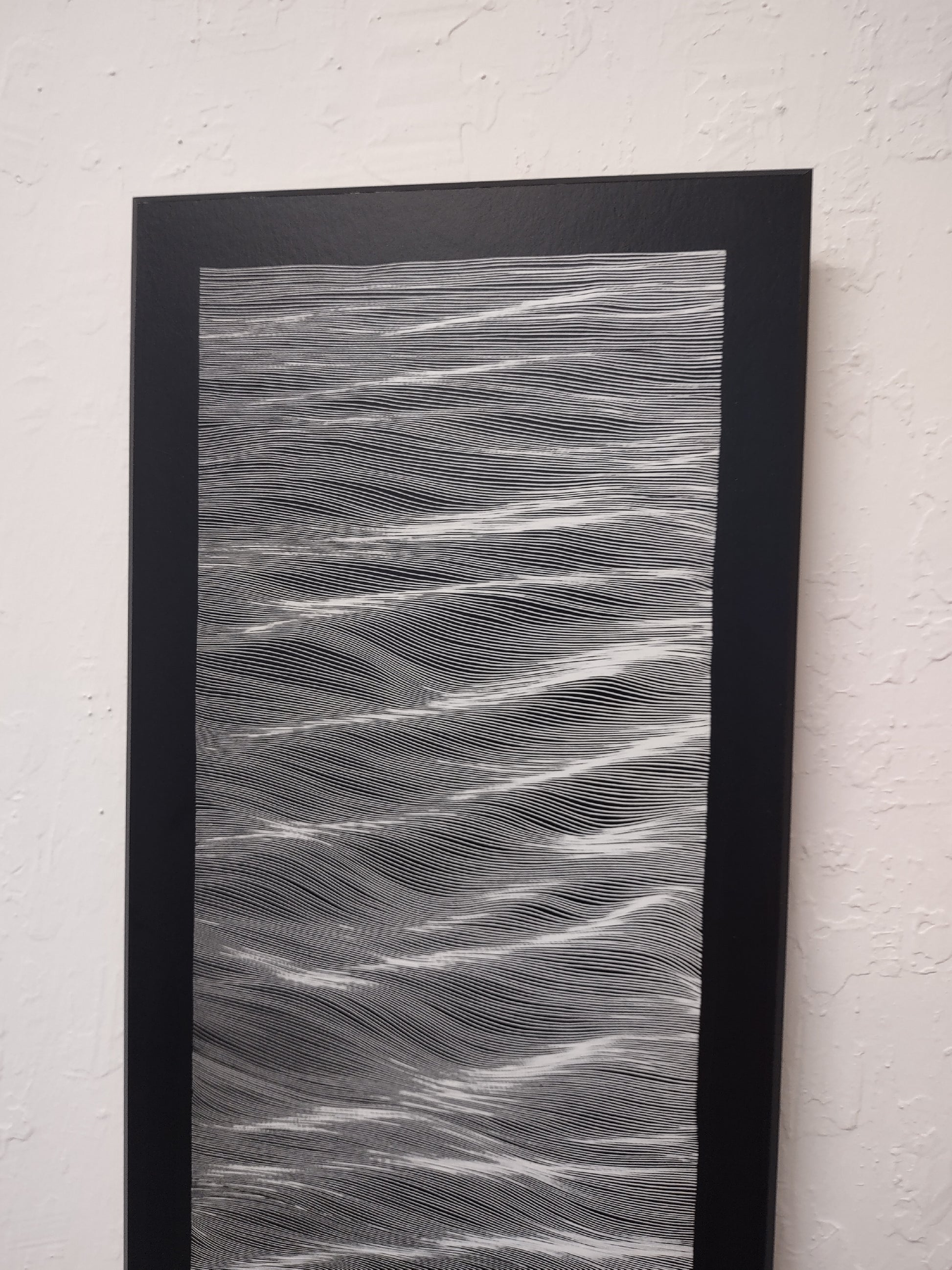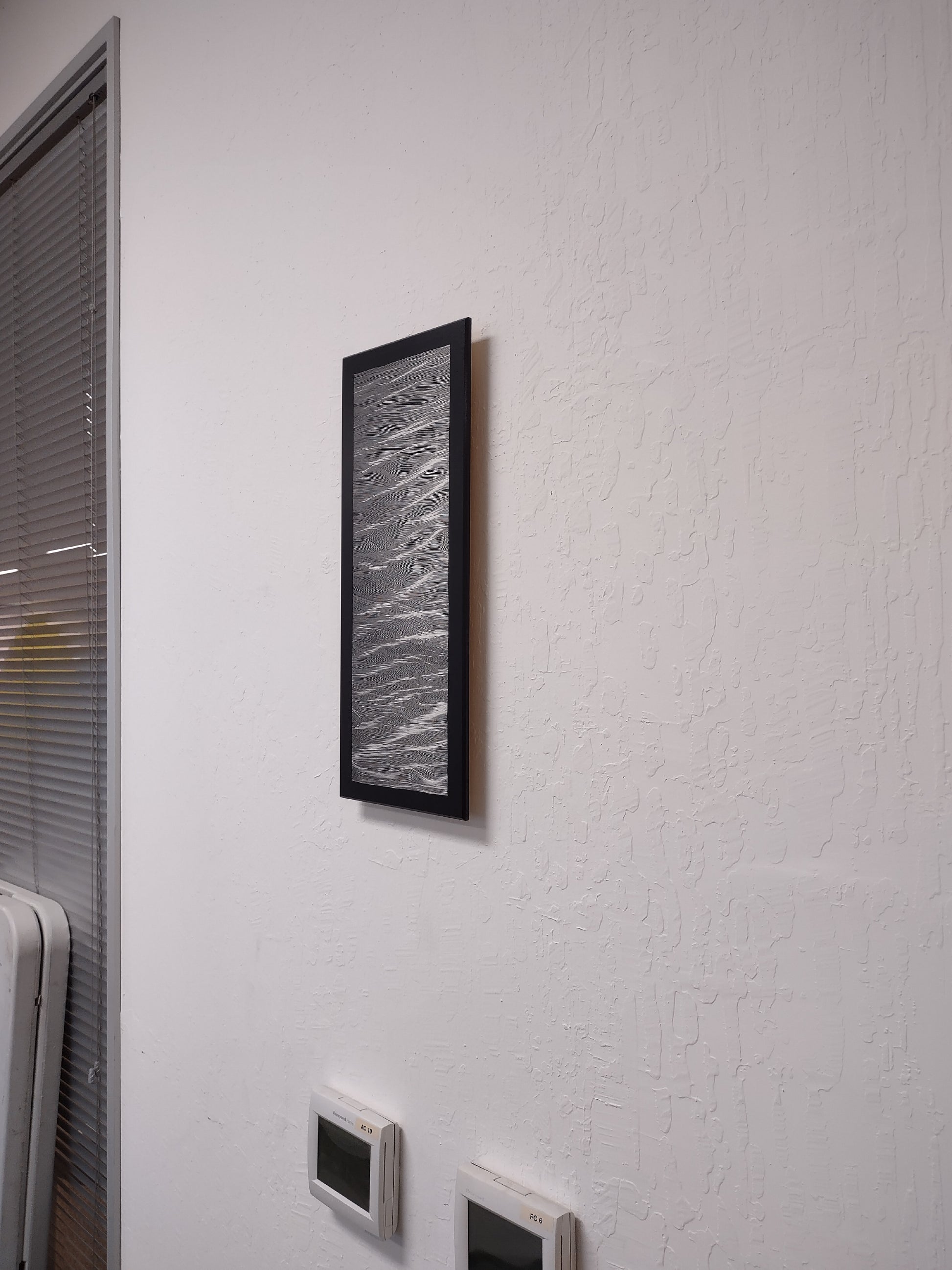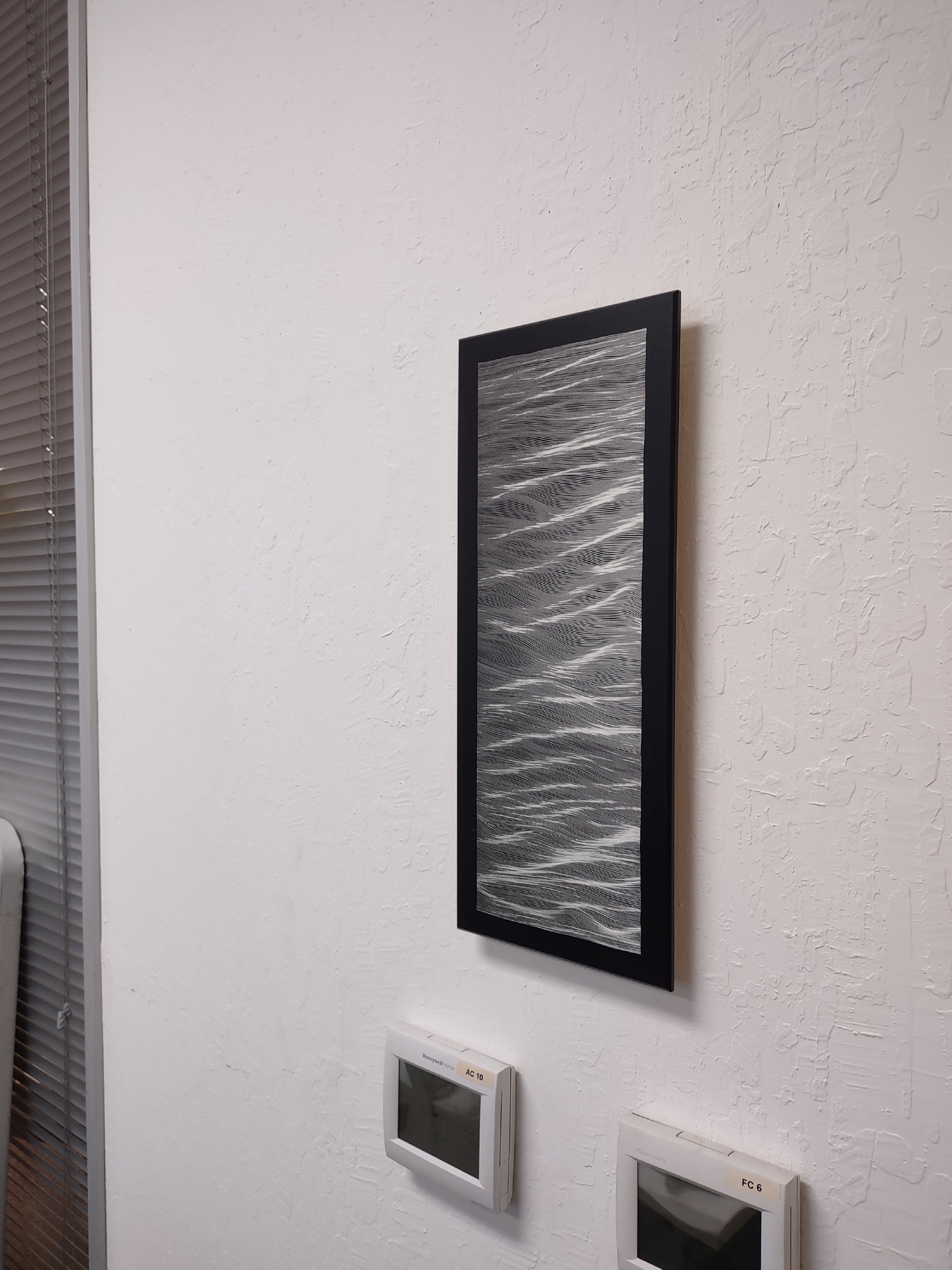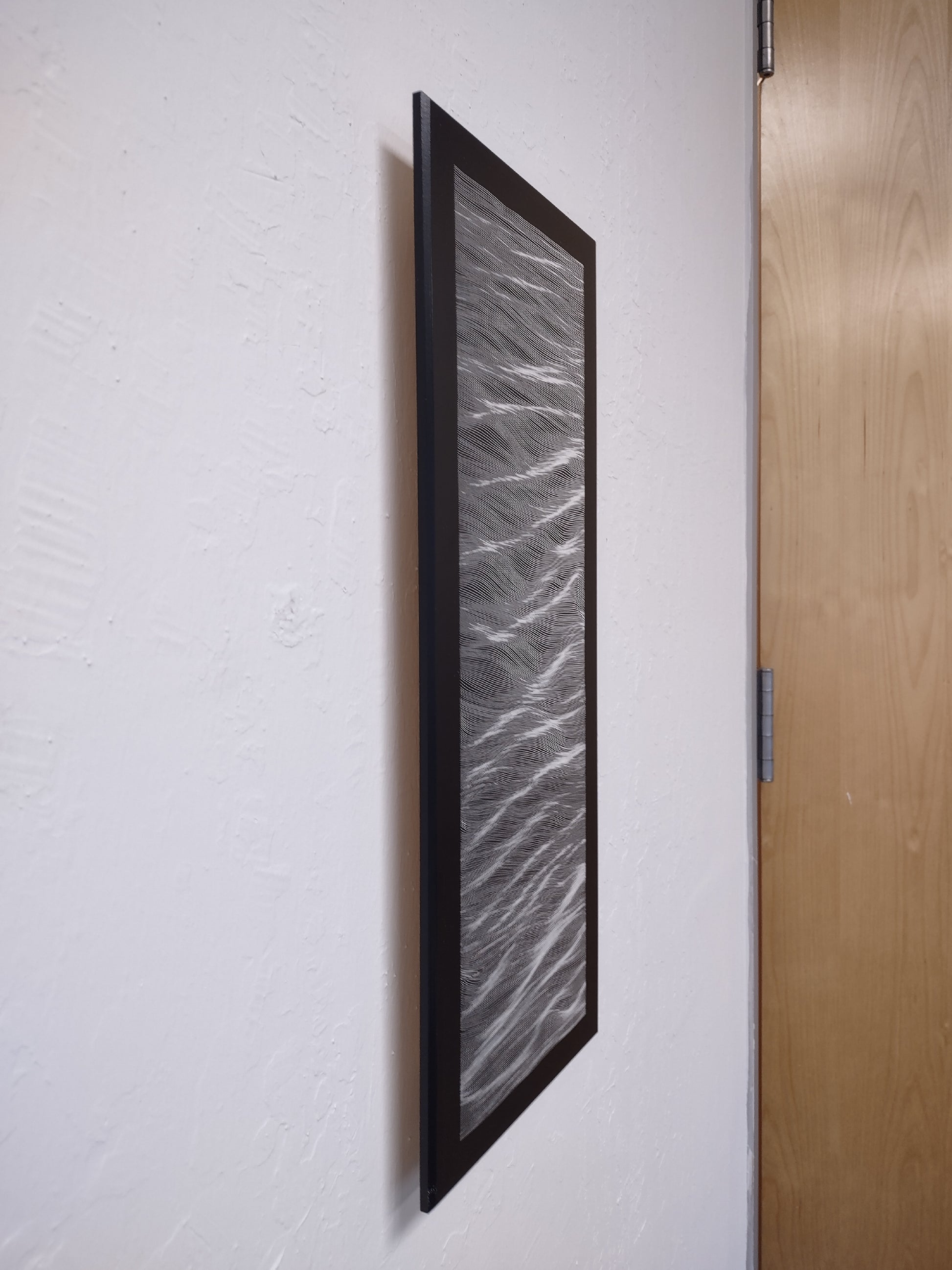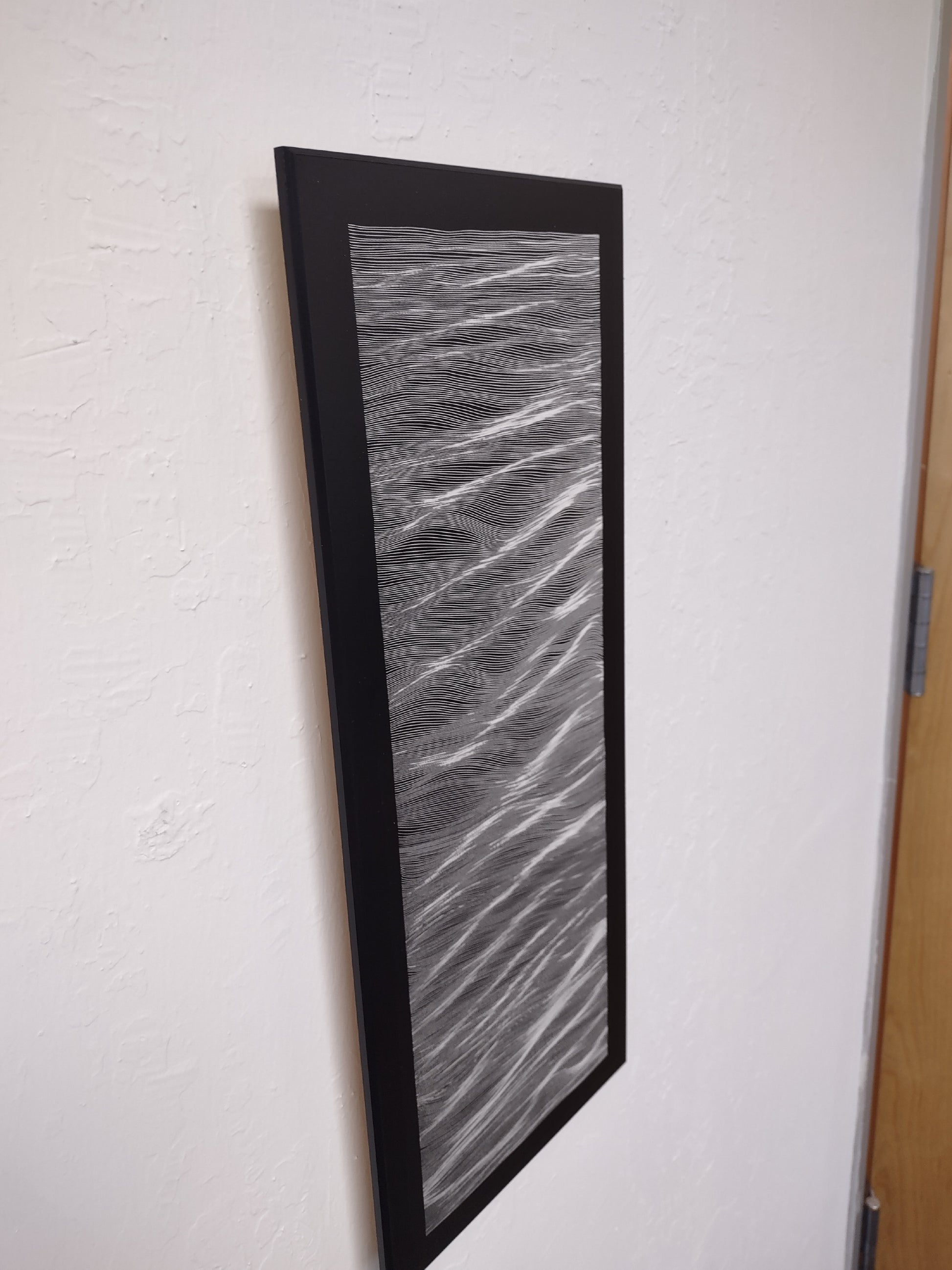 Floater style (see pictures): Sides are in black; Wire on back for easy hanging