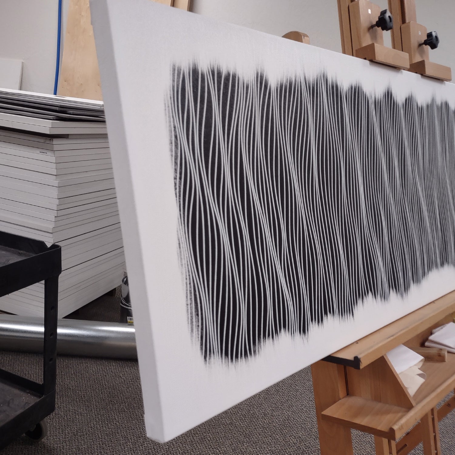 Classic LineScape in Black and White 20x60 inches (5 foot wide) 1.5 inch deep- original acrylic painting on stretched canvas that was hand stretched by artist herself