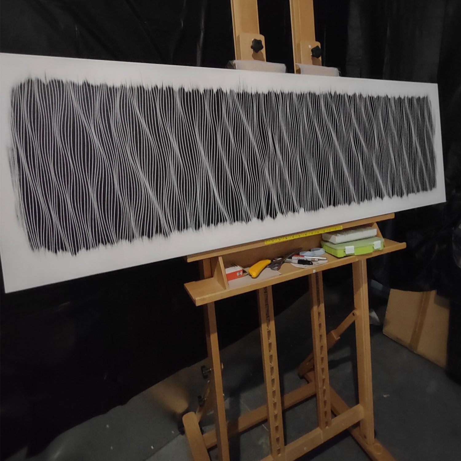 Classic LineScape in Black and White 20x60 inches (5 foot wide) 1.5 inch deep- original acrylic painting on stretched canvas