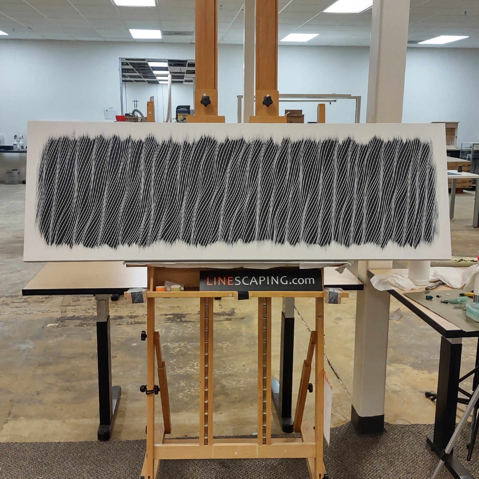 Classic LineScape in Black and White 20x60 inches (5 foot wide) 1.5 inch deep- original acrylic painting on stretched canvas